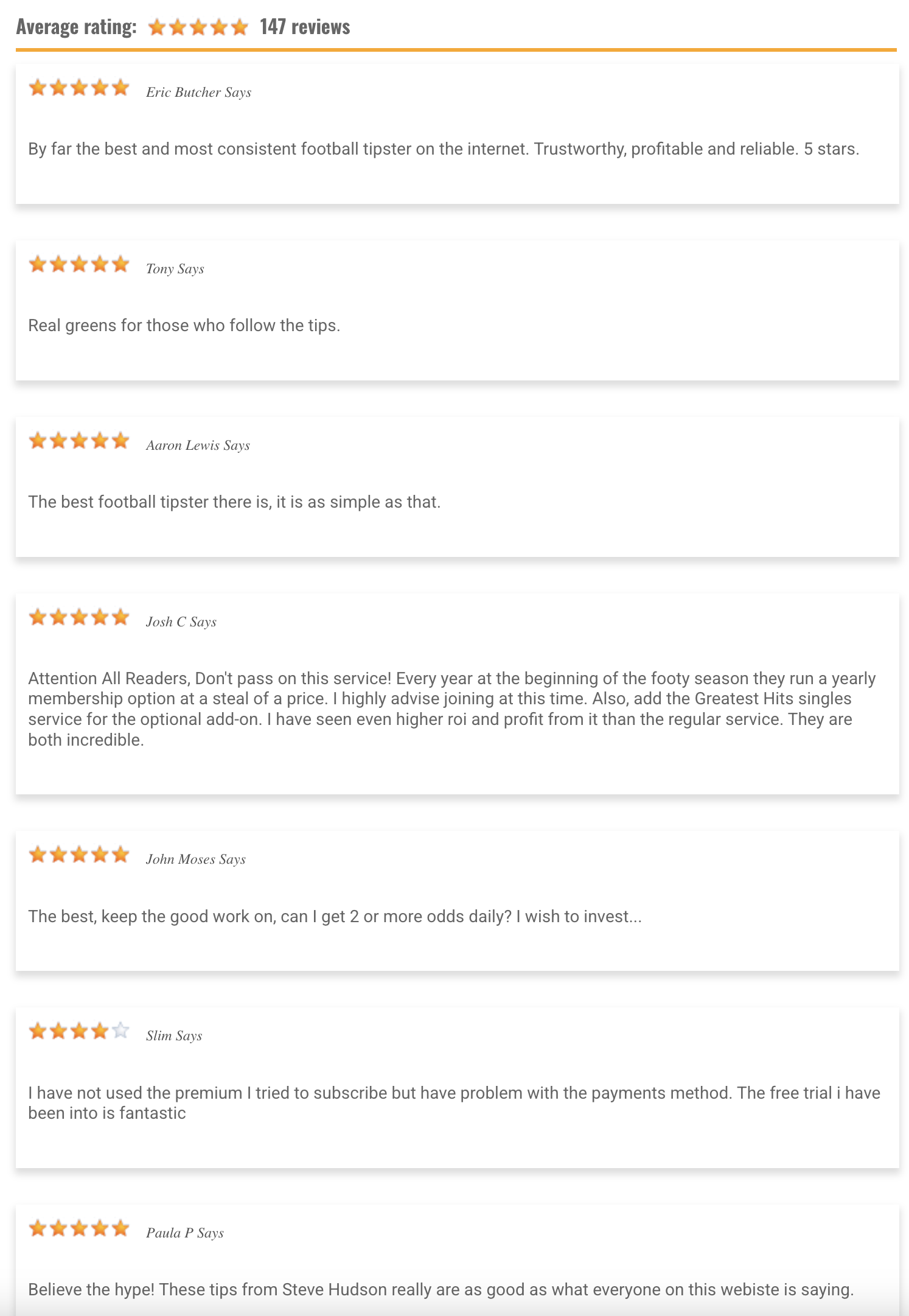 See Some of the 100+ Independent 5 Star Reviews left on TipstersReview.co.uk